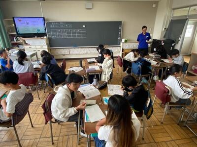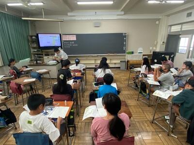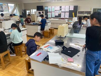 10/20 5年生の学習 投稿: 校長 (10:12) 今日の朝会であきる野市スポーツ祭の800mで優勝した児童を表彰しました。 5年1組は家庭科。裁縫に挑戦中 お気に入りの装飾をして完成間近です。余裕のVサイン✌️ 2組は社会、工業地帯の学習。それぞれの特徴を確認しています。 3組は算数。差や和に注目して変化をとらえる勉強。一人一人しっかり発言していました。 -