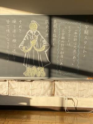 冬休み明けの教室、担任は今年初めて登校する子どもたちにあてて熱いメッセージを送ります。思いはきっと届くことでしょう。