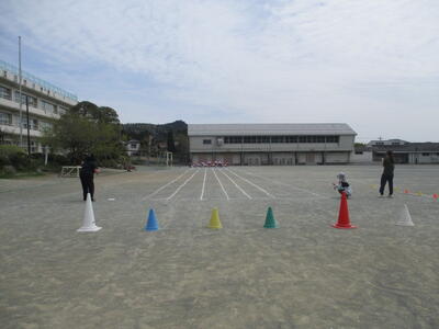 1年生は体育で50メートル走に取り組んでいました。入学して間もない中でも、一生懸命走る姿に感心しました。