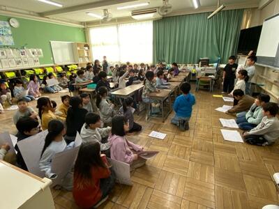 2年生がまちたんけんした成果を1年生に発表してくれました。